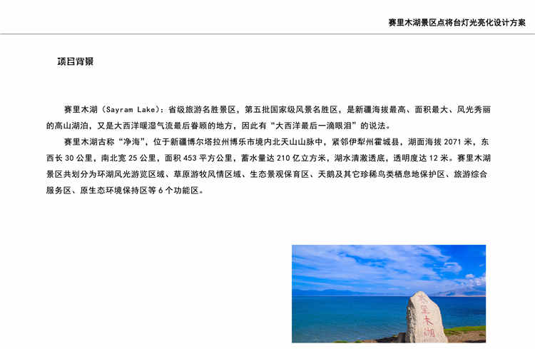 公司經(jīng)典案列 主頁(yè) > 新聞中心 > 公司經(jīng)典案列 > 新疆賽里木湖風(fēng)景區(qū)點(diǎn)將臺(tái)燈光亮化設(shè)計(jì)方案 日期:2019/5/24 14:13:35 閱讀 2584